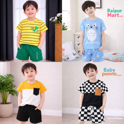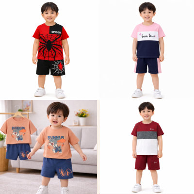 Discover our 4-Piece Half Sleeve T-Shirt and Pant Set Combo for kids, ranging from 3 Months to 7 years old. Made from 100% soft cotton, each shirt boasts unique chest prints and superior stitching for lasting quality. Packaged beautifully and affordably priced, it's the perfect gift for stylish comfort.